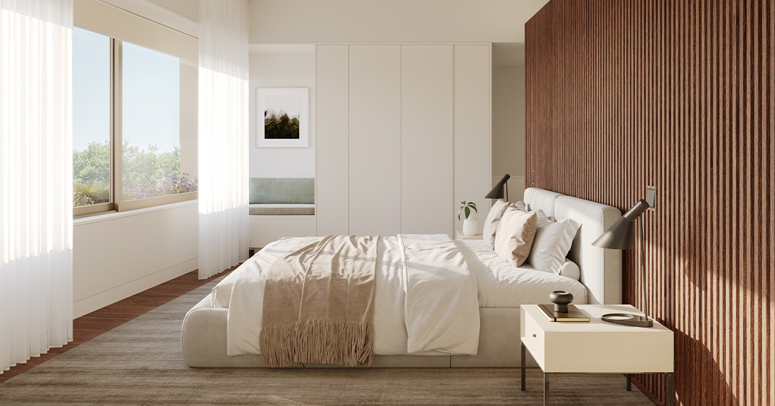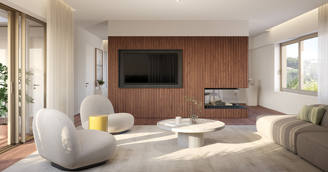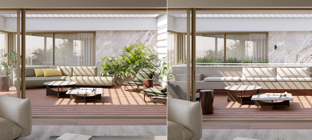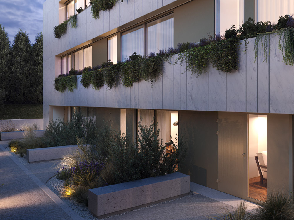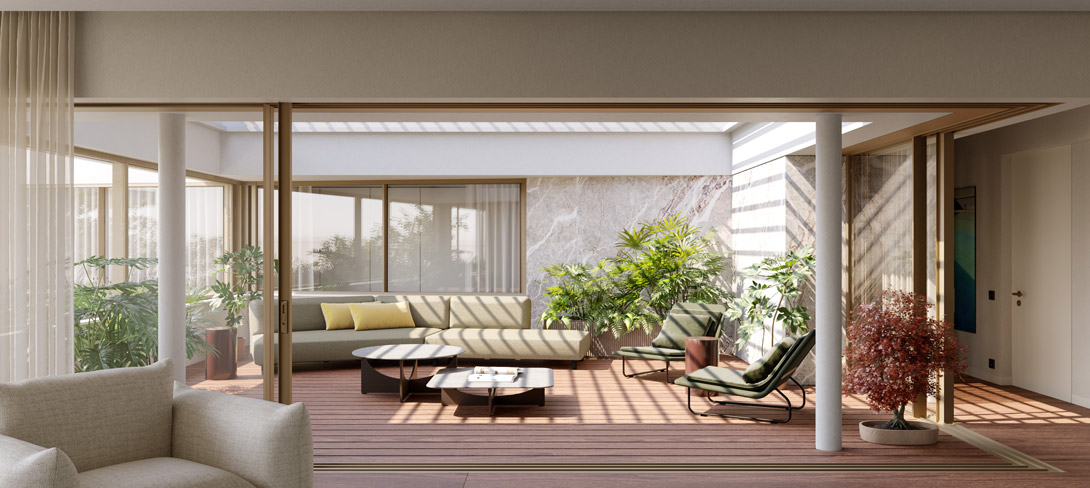 A VILLA assegura total privacidade e conta com estacionamento em box individual, complementado por um elevador privativo de acesso direto à habitação. A extensa zona verde, cuidadosamente desenhada entre os dois volumes do empreendimento, reforça ainda mais a sensação de exclusividade e resguardo.